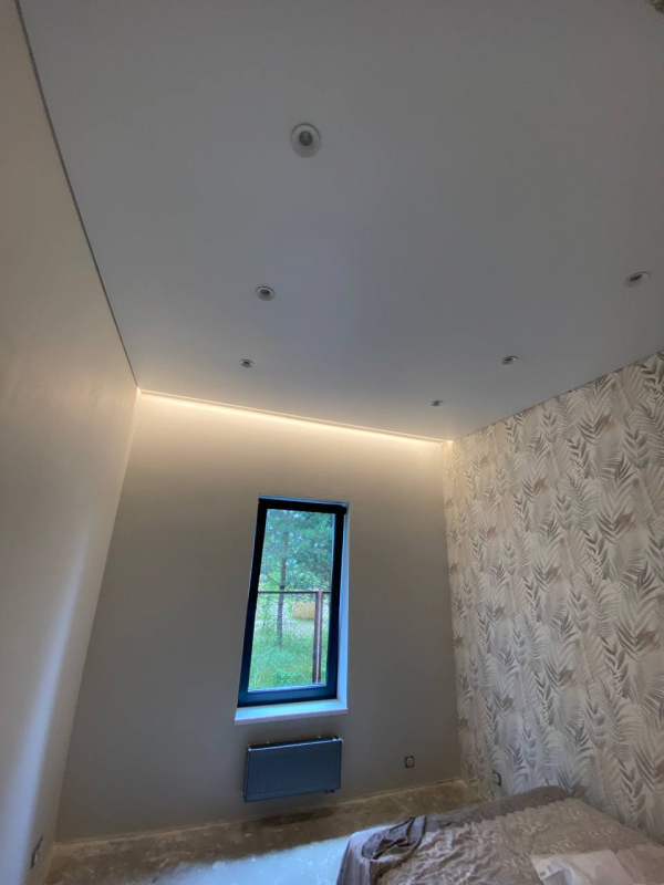 Натяжной потолок сможет создать в комнате уникальную атмосферу, а ведь настроение и мысли, с которыми Вы засыпаете и просыпаетесь сильно, влияют на весь день.