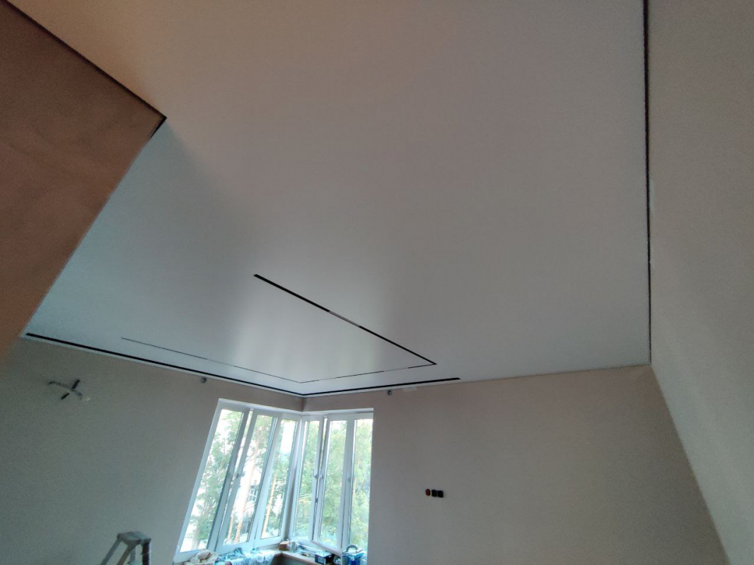 Итак, выбирая натяжные потолки в зал, обращайте внимание на материал: это может быть и пленка ПВХ, и ткань.